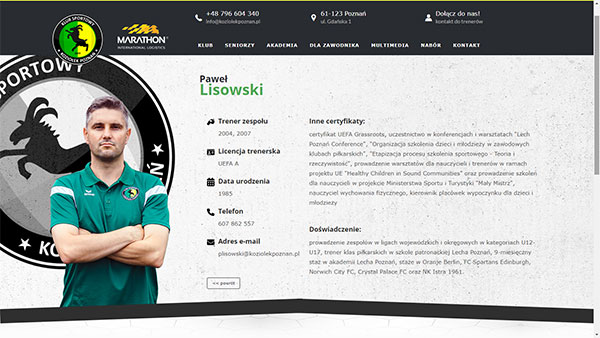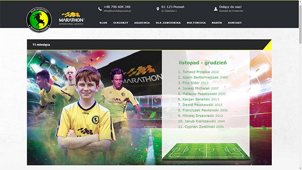 RealizacjaW pierwszej kolejności, trzymając się wytycznych Zarządu Koziołka, przygotowaliśmy zupełnie nową szatę graficzną. Doskonały materiał zdjęciowy, którym dysponował nasz klient sprawił, że praca na tym etapie była czystą przyjemnością, co raz jeszcze udowodniło rolę jaką przy projektowaniu odgrywa profesjonalna fotografia. Kolejnym etapem było wdrożenie serca strony, czyli naszego autorskiego systemu do zarządzania treścią. Tu zastosowaliśmy automatyzację wszędzie tam, gdzie było to możliwe. Wszystkie wyniki meczy, terminarze i tabele dla poszczególnych zespołów, raz na dobę aktualizują się "same" :) Tworzenie planu zajęć zautomatyzowaliśmy do tego stopnia, że wprowadzenie harmonogramu dla wszystkich drużyn zajęło nam jakieś... 5 minut :) A dokładniej musieliśmy wprowadzić 9 (słownie: dziewięć!!!) pozycji. Pozostałe 596 (!!!) rekordów dodało się automatycznie, tworząc plan zajęć dla wszystkich roczników na najbliższe 2 miesiące :) Sami pomyślcie, jaka to oszczędność czasu, który można spożytkować na inne aktywności!